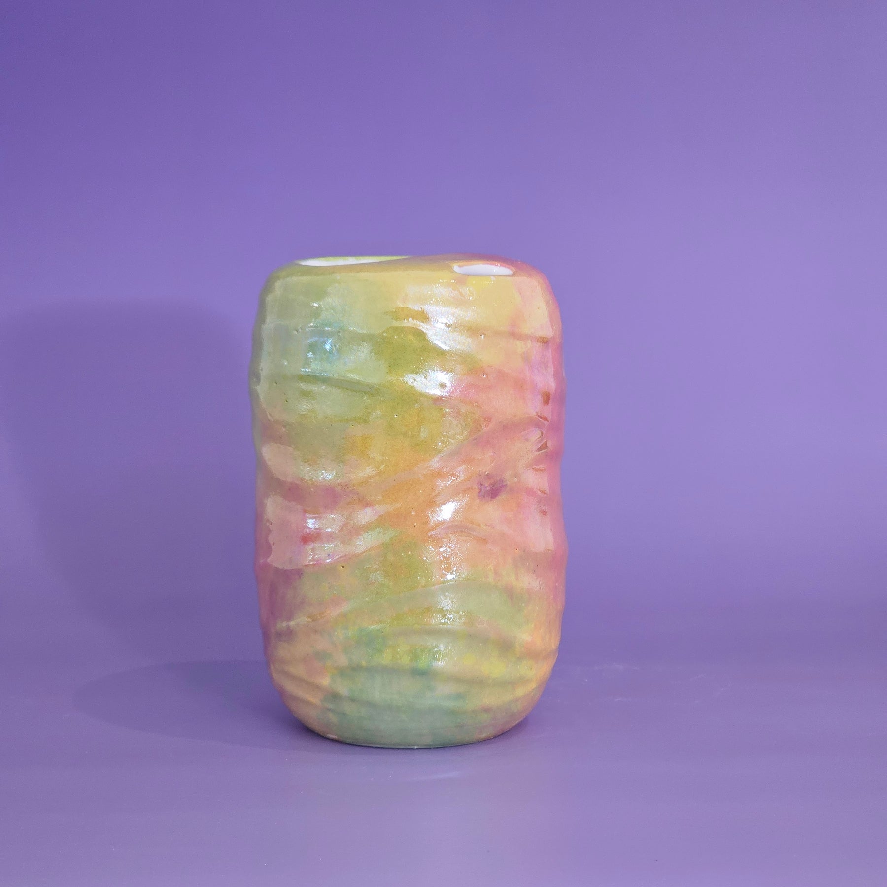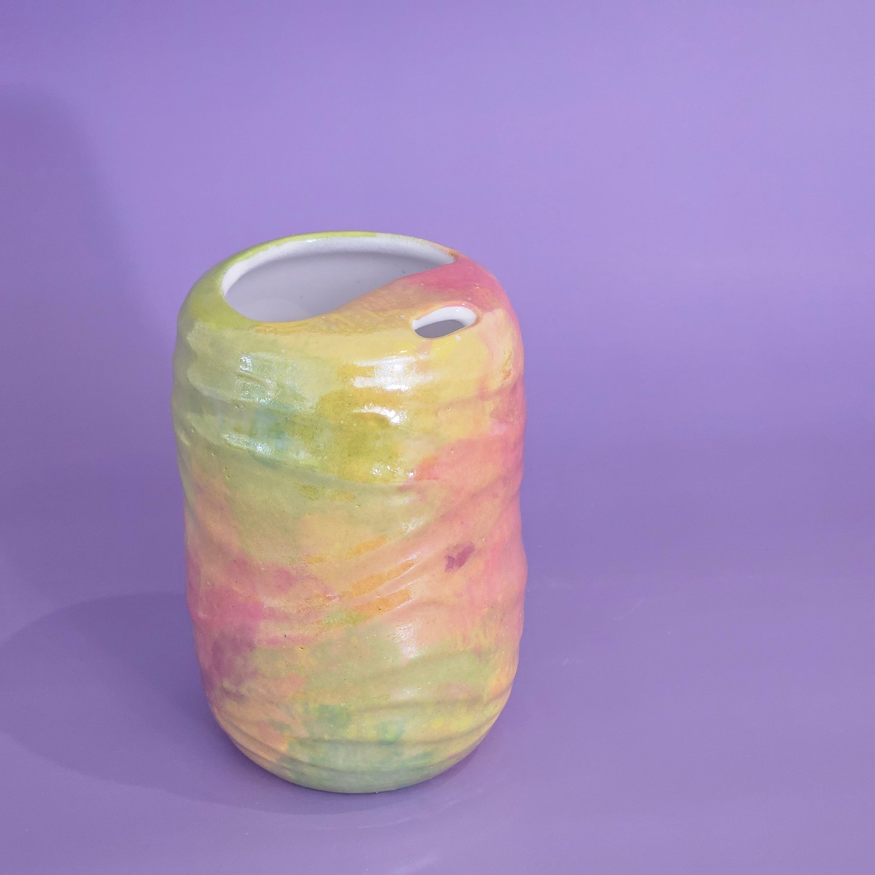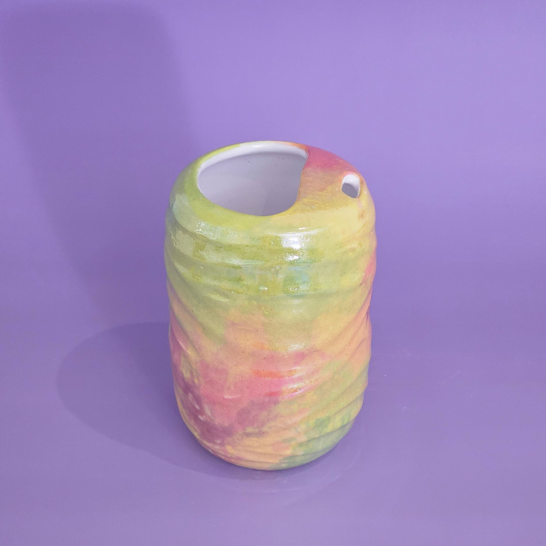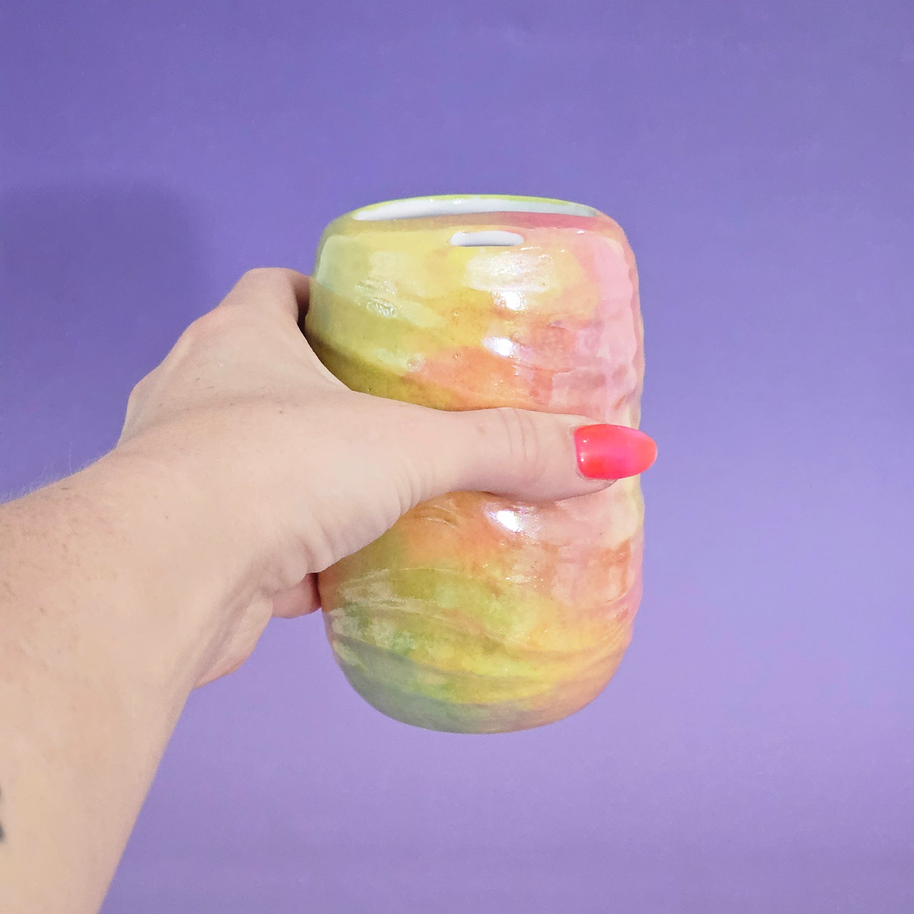 This to go cup has mother of pearl on it - making it NOT microwave safe